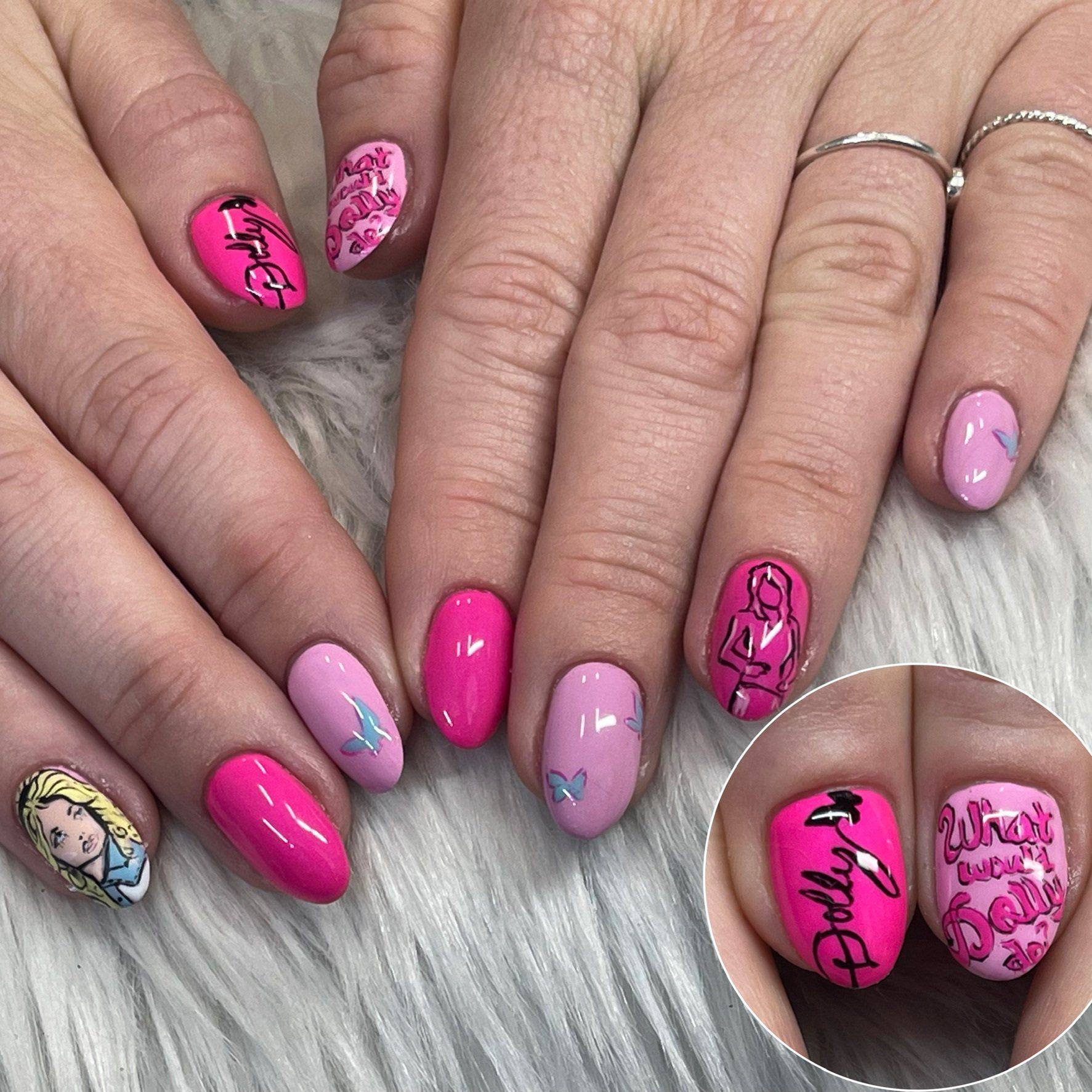 *Handpainted nail art examples: character portraits, detailed designs, encapsulations, anything handpainted that uses more than one color, detailed handpainted work, chrome designs, swirls