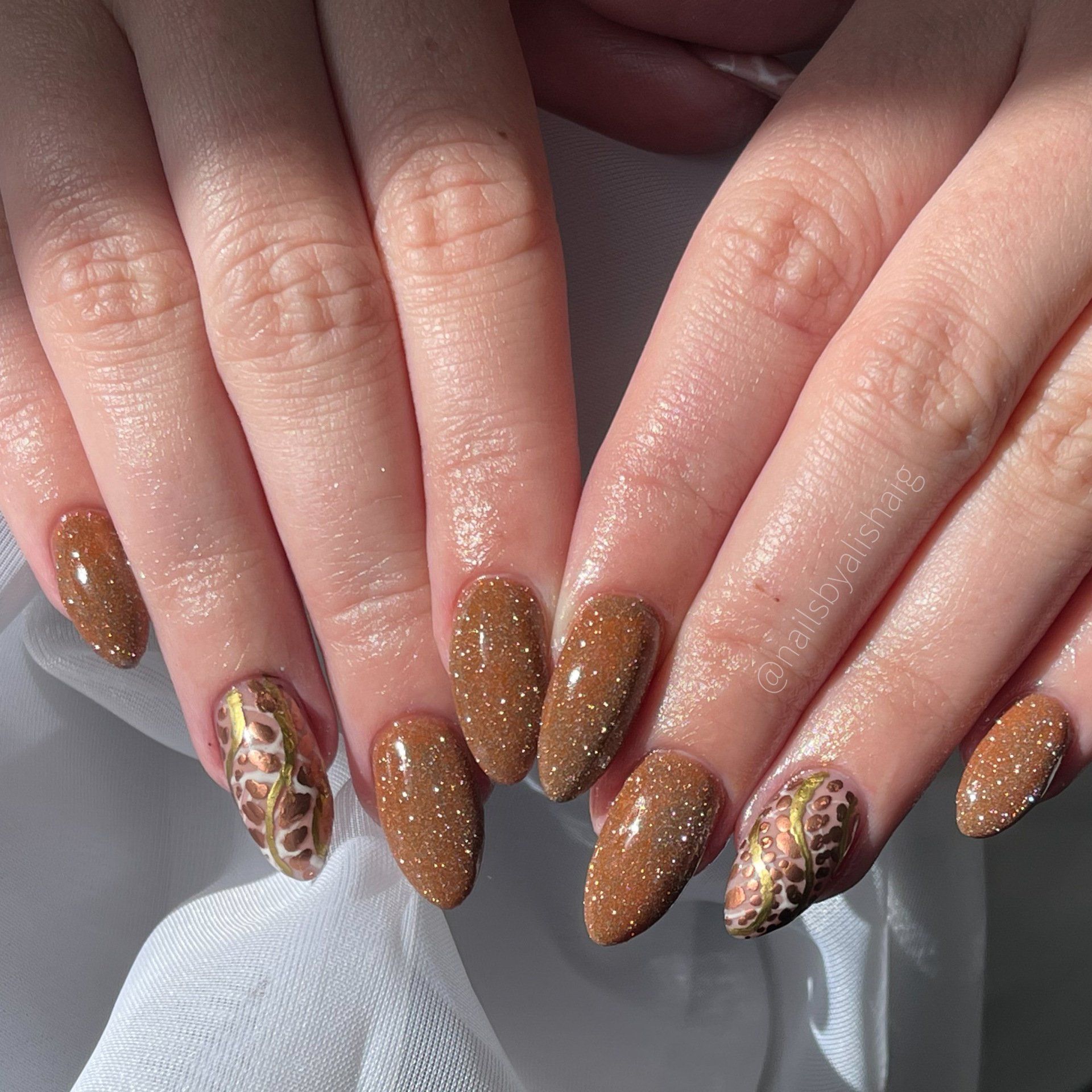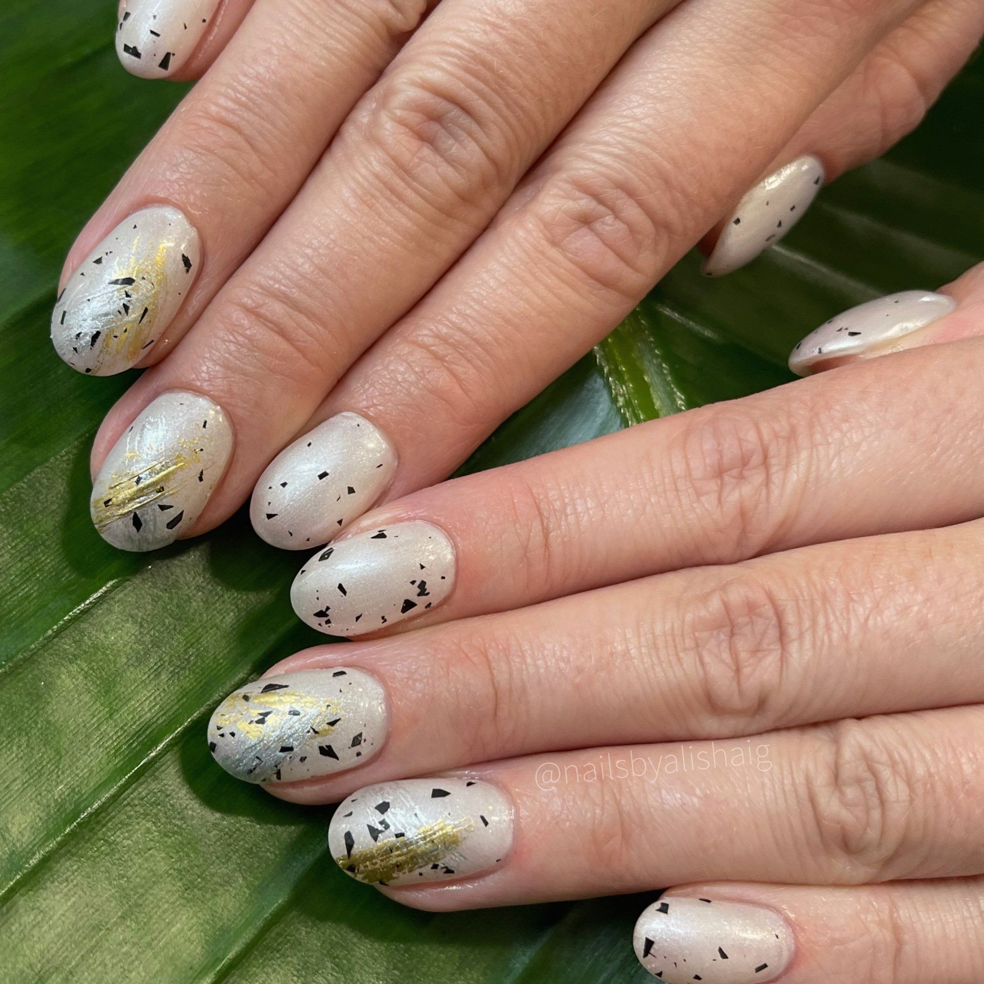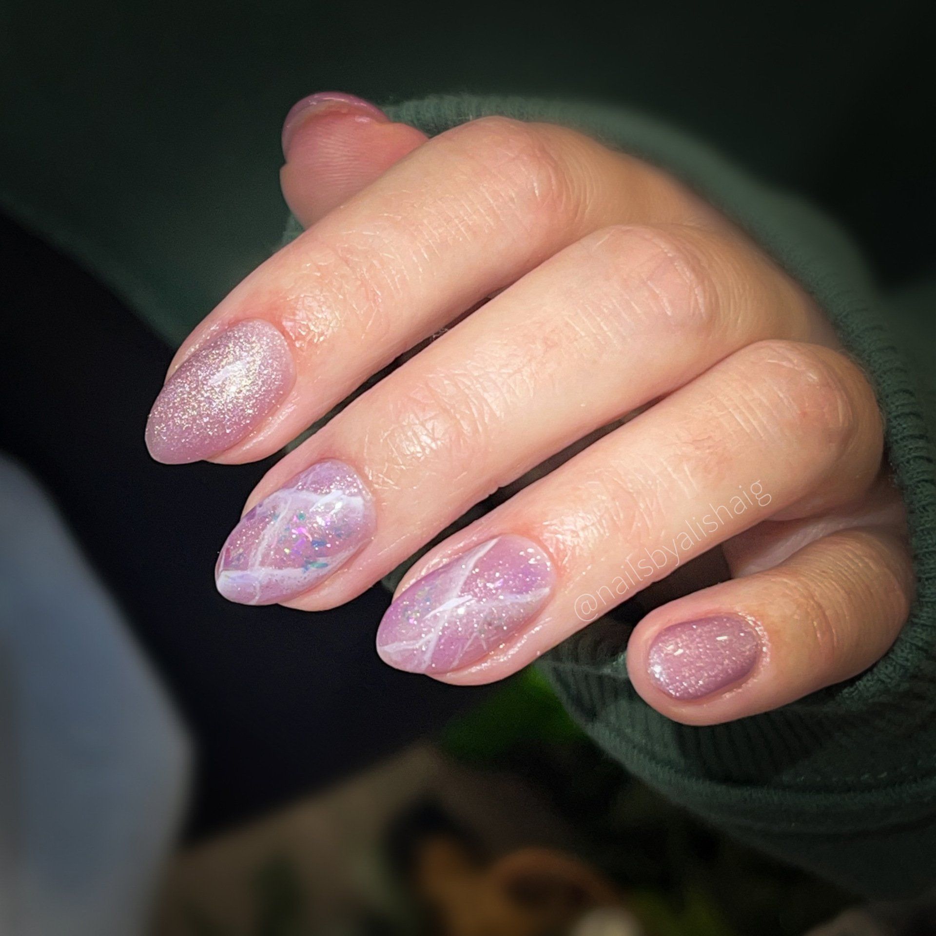 *Simple nail art examples: glitters, textures, marbling, hand painted basic shapes, French tip, chrome, foiling, gradients